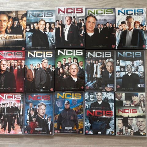 NCIS DVD sæt indeholdende sæson 1 til 9. Hver sæson leveres i standard DVD-format med flere diske pr. sæson. Sættet indeholder samlede episoder fra de første ni sæsoner af NCIS serien. DVD'erne er pakket i originale covere og bokse.