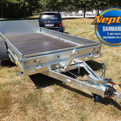 Multifunktionstrailer, som er yderst velegnet til transport af mindre maskiner som ATVer, havetraktorer og lignende. Tipfunktionen gør op og nedkørsel af maskinerne let som en leg.Denne trailer, har et stort tilbehørsprogram, og kan udvides med f.eks. ekstra sider, bagrampe, gittersider og meget andet. Derved får du endnu flere anvendelsesmuligheder.Bemærk den indvendige bredde på hele 165 cm.Kraftig 12 mm finér bundSvingbar nummerpladeholderIndvendige surringsøjerKraftige plast-skærmeBaglygter i stålramme, for bedre beskyttelse.Tip-funktion med hjælpefjeder (Gasdæmper)Forstærkede, galvaniserede vanger