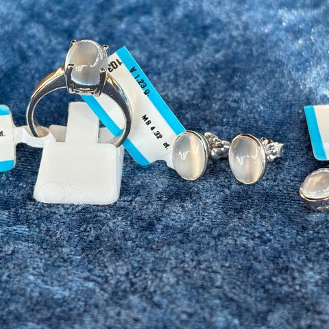Smykkesæt af sølv og lyserøde månesten.