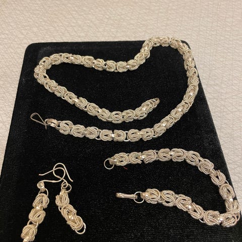 Sæt i sterlingsølv og sort onyks. Beståede af armlænke og øreringe.