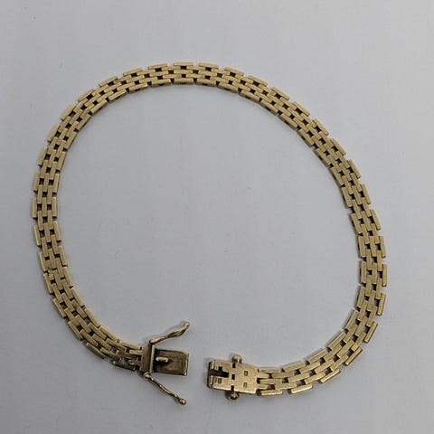 Armlænke i guld købes. Mursten. 14 karat. Længde 17-18 cm.