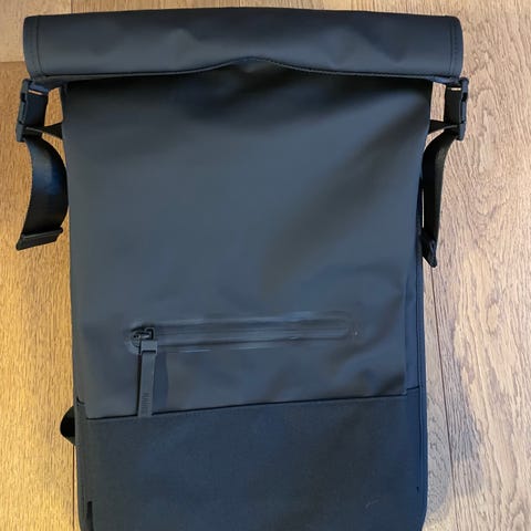 Rains rygsæk i plast til unisex. Tasken har en lukning med spænde og et enkelt, funktionelt design. brugt enkelte gange. ny pris 999 kr.