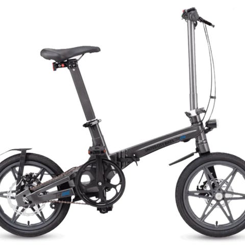 It’s a red/white folding e-bike with 16” wheels and single-speed. Great if you need something compact for an apartment, car trunk, or mixed commuting.