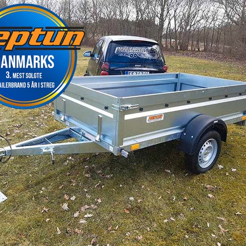 Neptun N7-263 Pro [GN159] med vippe-funktion og høje siderNeptun N7-263 Pro [GN159] er den ideelle trailer til både privatkunder og erhvervskunder, der søger en pålidelig og alsidig løsning til transport af byggematerialer og udstyr.Neptun Pro N7-263 med 45 cm høje sider Med Neptun N7-263 Pro får du ikke kun rigelig plads til at transportere større genstande, men også ekstra volumen takket være de høje stålsider på 45 cm. Dette betyder, at du kan transportere endnu flere varer og materialer der fylder meget uden at gå på kompromis med sikkerheden. Neptun N7-263 Pro trailer med vipDen manuelle vippefunktion er en fantastisk funktion, der gør det nemt at losse og læsse dine varer. Du behøver ikke længere at bekymre dig om at skulle løfte tunge genstande af traileren. Med et enkelt træk kan du nemt vippe ladet og losse dine varer uden besvær. Det sparer dig tid og kræfter og gør transporten mere effektiv. Neptun Trailers pro-serie til professionelleStærk og holdbar konstruktion: Neptun GN159 har en holdbar konstruktion, der sikres af den fuldt svejsede ramme og trækstang og de stærke U-profiler med tværgående bjælker.Stærke sider i profileret stål: De 450 mm sideplader er lavet af høj kvalitet og zinkbelagt så de kan klare det danske vejr. Siderne er profilerede for at opnå høj styrke og en stiv kasse.For- og bagsmæk kan åbnes, hvilket gør det muligt at transportere lange genstande.Nem lastsikring: Øjer til lastsikring er placeret i hjørnerne af læsseplatformen og fastgjort til gulvet og den svejsede ramme, hvilket gør det muligt at sikre lasten hurtigt og nemt.Lygtebeskyttelse: De multifunktionelle lygter er monteret inde i bagkofangeren, under ladet, så de er beskyttet mod skader. Vigtigste specifikationer og standardudstyrIndvendig længde: 263 cmIndvendig bredde: 129 cmIndvendig højde: 45 cmIndvendige surringsøjer: JaFjongknapper til trailerpresenning/-net: JaNedfældelig for- og bagsmækAntal aksler: 1Hjulstørrelse: 13" Tilbehør til Neptun N7-263 [GN159]Vi tilbyder et bredt udvalg af tilbehør skræddersyet til Neptun GN159. Hold din trailer i topform og tilpas den efter dine behov med vores reservedele og praktiske tilbehør. Se vores kæmpe udvalg af reservedele eller kontakt vores reservedelslager på telefon 75383400 i dag for at finde de rigtige dele og tilbehør til din trailer.Køb Neptun Trailers hos Kongeaa TrailercenterKøb Neptun Pro N7-263 Pro online eller besøg vores afdeling i Brørup, hvor du kan opleve et stort udvalg af trailere fra Neptun og mere end 3.000 nye og brugte trailere. Uanset om du har brug for en pålidelig trailer til privat eller erhvervsmæssig brug, har vi den perfekte trailer til dig. Vi står klar til at hjælpe dig med at gøre din transportoplevelse endnu bedre. Neptun PRO N7-263 [GN159] med valgfri totalvægtDenne model kan registreres med en totalvægt på enten 750 kg eller 500 kg til samme pris.Totalvægt: 750 kg | Lasteevne: 495 kgTotalvægt: 500 kg | Lasteevne: 245 kg{{widget type="Magento\Cms\Block\Widget\Block" template="widget/static_block/default.phtml" block_id="108" type_name="CMS Static Block"}}