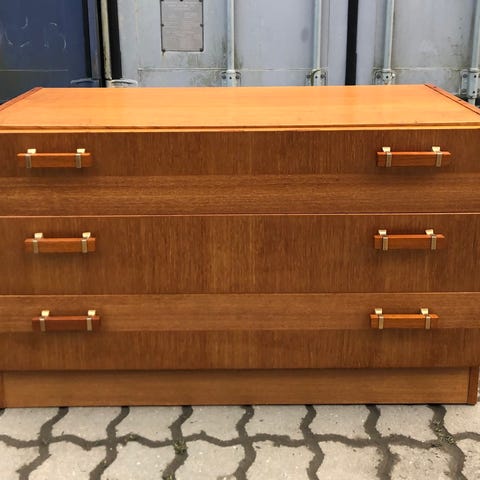 Retro kommode mahogni fra 50 er'ne med 3 skuffer l 91 cm d 46 cm h 65 cm Mulighed for levering til kantsten gadeplan I København eller nærmeste omegn for 100kr