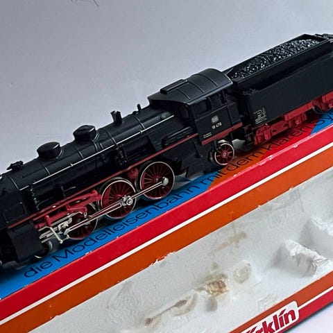 Märklin modeltog med forskellige modelnumre: 3053, 3058, 3037, 8385, 3123 og 3021. Produkterne er fremstillet i Vesttyskland og kommer i originalemballage. Modellerne er egnet til samlere eller modeljernbaneentusiaster.