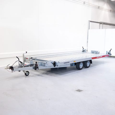 Temared carkeeper 5820 3S er stærk autotrailer med vippe-funktion og stort lad, der gør transport af biler til en leg.Stort lad med tipsystem til biltransportCarkeeper 5820 har et stort lad på 600 x 207 cm, og dermed masser af plads til selv de største køretøjer. Med denne trailer kan du nemt og sikkert transportere personbiler, SUV'er og varevogne, uden at bekymre dig om pladsen.Nem på- og aflæsning med vippe-funktionVippe-funktionen gør det muligt at vippe hele ladet ved hjælp af den manuelle hydraulikpumpe, hvilket gør på- og aflæsning af biler utrolig nem. Du kan hurtigt justere ladet med den letbetjente pumpe, hvilket sikrer, at du kan håndtere selv de mest udfordrende læsseopgaver med lethed.Den lave opkørselsvinkel på 11 grader er ideel til biler med lav frihøjde. Du kan nemt og sikkert læsse sportsvogne og andre lavtliggende køretøjer uden risiko for skader. Dette gør Temared carkeeper 5820 3S til det perfekte valg for bilelskere og professionelle.Robust undervogn med 3 akslerDen solide varmgalvaniserede og svejsede undervogn garanterer langvarig holdbarhed og modstandsdygtighed over for rust og korrosion. Du kan stole på, at din trailer forbliver i topform, selv under de mest krævende forhold. Dette betyder mindre vedligeholdelse og mere tid til at fokusere på dine opgaver.Med 3-aksler får du en stabil og sikker kørsel, selv når du transporterer tunge læs. Den gode vægtfordeling sikrer, at traileren ligger godt på vejen, også når den er fuldt lastet.Nem adgang - lad uden forhindringerLygterne kan vippes til siden og nummerpladen ned ved pålæsning, hvilket giver et frit lad og gør det nemt at læsse traileren uden risiko for skader.Effektivt trækspilDet manuelle trækspil giver dig mulighed for at trække biler op på traileren uden besvær. Du kan nemt håndtere selv tunge køretøjer, hvilket gør hele processen mere effektiv og mindre anstrengende. Dette er en stor fordel, når du arbejder alene eller har brug for at flytte biler hurtigt.Praktisk næsehjulDet kraftige næsehjul gør det nemt at manøvrere traileren, når den er frakoblet bilen. Du kan hurtigt og præcist justere traileren, hvilket gør det lettere at parkere og flytte traileren rundt. Dette sparer tid og kræfter, især hvor pladsen er trang.Solid metalbund med surringshullerDen stærke metalbund med surringshuller giver dig mulighed for sikkert at fastgøre din last. Du kan nemt sikre dine køretøjer, så de forbliver solidt forankret under transport. Dette giver dig ekstra tryghed og sikkerhed.Køb Temared Carkeeper 5820 3SKøb din Temared Carkeeper 5820 3S direkte i vores web-shop og oplev den ultimative autotrailer med vip.For yderligere information, kontakt vores kompetente salgsteam, som står klar til at hjælpe dig.Du er også velkommen til at besøge vores store udstilling i Brørup og se traileren med egne øjne – vi glæder os til at byde dig velkommen!