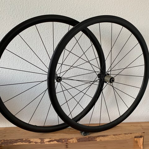 Højkvalitets Carbon racerhjulsæt fra bontrager med en nypris på 20.000kr som er til fælg bremser og dæk og slange