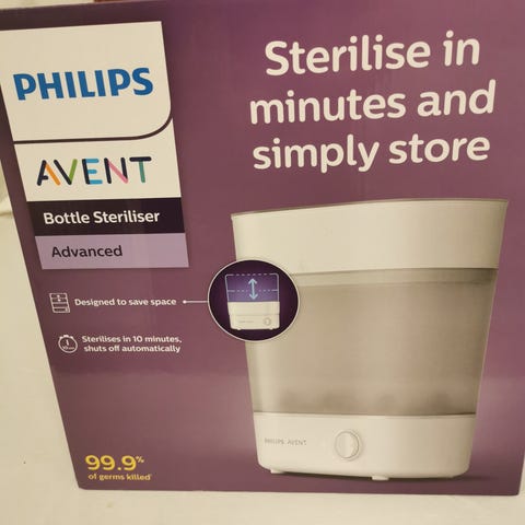 Steriliser op til seks sutteflasker med tilbehør på bare 10 minutter. Den slanke, men rummelige Flaske sterilisator Advanced er hurtig og effektiv og dræber 99,9 % af alle bakterier.