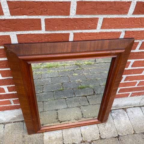 Ovalt spejl med facetslebet spejl. Ældre model, sortmalet træramme.