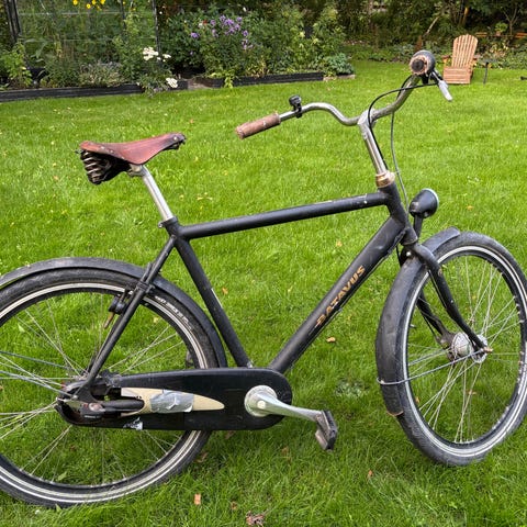 Batavus Harlem Bycykel. Cyklen har en matsort ramme, for- og bagkurv til opbevaring, samt komfortable håndtag og sadel. Velegnet til daglig transport. Købt i juli 2018. Nypris 7400 for cykel og kurv.