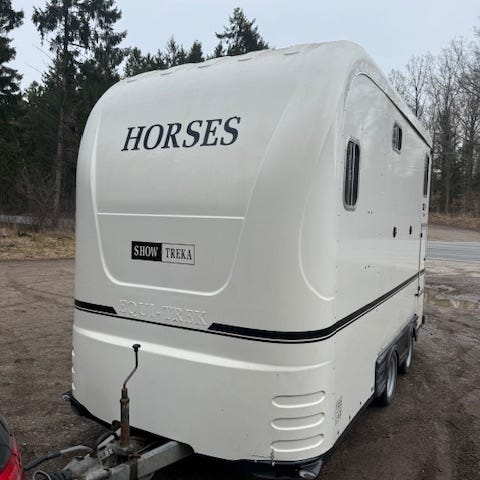 Equi-Trek Night-Treka Elite – Den ultimative hestetrailer med livingEqui-Trek Night-Treka Elite, en hestetrailer med indbygget living, sikrer både hestene maksimal komfort og sikkerhed og tilbyder dig en luksuriøs oplevelse med alle moderne bekvemmeligheder under rejsen.Perfekt for professionelle ryttere, stutteriejere, samt hobby- og fritidsryttere, denne trailer repræsenterer en revolution inden for hestetransport. Med en totalvægt på 3000 kg og en imponerende lasteevne på 1805 kg, er Night-Treka Elite bygget til at modstå de mest krævende rejser og sikrer, at både heste og ryttere ankommer friske og klar til enhver udfordring.Hestens komfort og sikkerhedRummelig hestekabine: Indvendige mål på (L) 294 x (B) 187 x (H) 236 cm tilbyder masser af plads til op til to store heste.Elite skillerum og hingstegitter: Justerbare skillerum og hingstegitter sikrer hestenes sikkerhed under transport.Overlegen ventilation: Tagluge og fire skydevinduer sikrer optimal luftcirkulation, essentiel for hestenes velbefindende.Sikker ind- og udstigning: Alu-planke bunden og rampen med fangdøre garanterer en sikker og skridsikker adgang for dine heste.Living med luksusKomfortabel "living": Udstyret med en sofa i nappalæder, der nemt omdannes til to køjesenge, tilbyder Night-Treka Elite en rolig retræte efter en lang dag.Køkken: Med vask, integreret gasblus, og nok plads til madlavning, bliver måltider på farten en leg.Praktisk opbevaring: Saddelskabet med plads til to sadler samt ekstra kroge holder dit udstyr organiseret og sikkert.Night-Treka Elite - designet til livet på vejenKamera til hestedelen: Med et 7” skærmkamera kan du holde øje med dine heste under hele rejsen.Høj Rytterdør: Gør adgangen lettere med en høj rytterdør, udstyret med et praktisk skydevindue.Indbygget vandtank med spuler: Praktisk til stævner og når du er på turSpecial lakering i sølv: Night-Treka Elite skiller sig ud med sin elegante sølvlakering og panoramavindue, der tilføjer et touch af klasse til din rejse.Oplev Night-Treka Elite hos KongeaaGør din rejse til en oplevelse med Equi-Trek Night-Treka Elite. Kontakt Kongeaa Trailercenter i dag og tag det første skridt mod ubesværet og luksuriøs hestetransport. Vores team af eksperter står klar til at hjælpe dig med at finde den perfekte hestetrailer til dine behov.