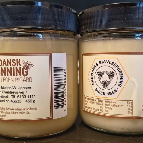 Tavlehonning I flydene honning (sommer og kløverhonning)