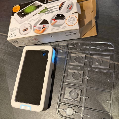 What it is is basically a lens that you attach to your phone, which turns it into a portable microscope