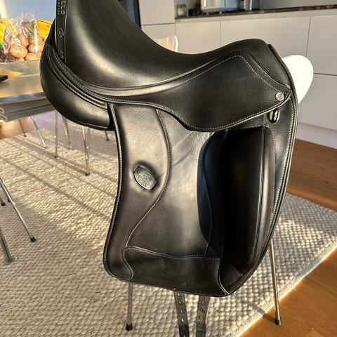 Sadlen står flot, altid hængt i opvarmet sadelrum og løbende tilset og tilpasset pony af sadelmager.