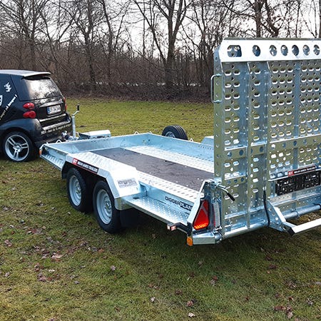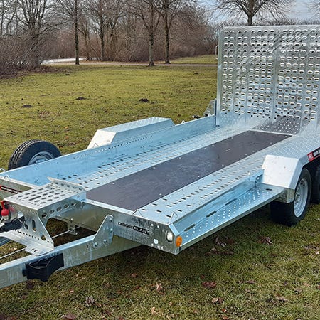 Maskintrailer til gravemaskiner og entreprenørudstyr – bygget til hårdt brugEffektiv og sikker transport af dine maskinerBrian James Digger Plant 543-3217 er skabt til professionel brug. Med en nyttelast på næsten 2.900 kg og et lad på 320 x 170 cm er der god plads til både minigravere, dumpere og andre maskiner. Den fjederassisterede rampe og lave læssehøjde gør det nemt at læsse og aflæsse – selv af én person. Denne maskintrailer er ideel til dig, der ønsker effektiv og sikker transport med mindst muligt besvær.Robust konstruktion med fokus på driftssikkerhedTraileren er bygget i varmgalvaniseret stål, hvilket giver maksimal styrke og lang levetid. Den skridsikre bund i kraftig finér kombineret med perforerede stålgulve tåler tunge maskiner og hårde arbejdsdage. Med dobbelte aksler, kraftigt næsehjul og et solidt støtteben bagtil er stabilitet og sikkerhed i top.Udstyret til professionelle brugereDigger Plant 543-3217 leveres med LED-lys hele vejen rundt, reservehjul og indbyggede surringspunkter. Kombineret med lav læssehøjde og rampe med gasfjeder får du en trailer, der er let at håndtere – men bygget til hårdt arbejde.Derfor skal du vælge Digger Plant 543-32173.500 kg totalvægt og ca. 2.866 kg nyttelast (afhængigt af udstyr)Lav læssehøjde på kun 38 cmFjederassisteret bagrampe i fuld breddeRobust og varmgalvaniseret stålkonstruktionTop 3 fordele – skabt til professionelleTidsbesparelse: Rampen og læssehøjden gør det hurtigt og nemt at lasteLang levetid: Galvaniseret chassis og solide materialer minimerer vedligeholdSikker transport: LED-lygter sikre at du bliver set dag og nat - solide surringspunkter beskytter dit udstyrTekniske specifikationerIndvendige mål: 320 × 170 cmTotalvægt: 3.500 kgNyttelast: Op til 2.866 kgLæssehøjde: Ca. 38–40 cmAksler: 2 stk. AL-KO aksler med bremserTilbehør til Brian James Digger Plant 543‐3217‐35‐2‐12Brian James’ unikke lastsikringssystem, TracStrap, gør det ekstra nemt at fastgøre bæltekøretøjer. Derudover kan traileren udstyres med praktisk skovlholder og el-spil. Se hele udvalget af tilbehør i tilbehørskategorien.Klar til professionel maskintransport?Køb Brian James Digger Plant 543-3217 online eller ring til Kongeaa Trailercenter på 75 38 26 00 hvis du har spørgsmål. Du er også velkommen til at besøge vores udstilling – Vi ligger lige ved motorvej E20, afkørsel 69 - hvis du ønsker at opleve maskintraileren inden køb*.Gør som landets dygtigste entreprenører – vælg en trailer, der gør arbejdet nemmere!