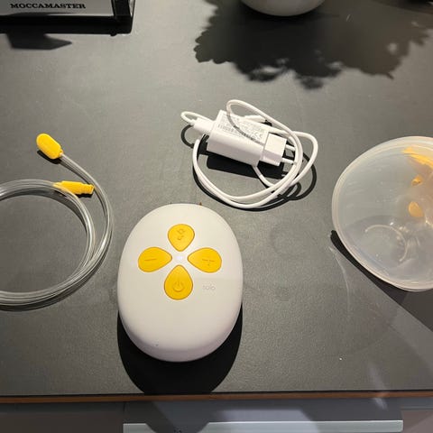 Kun prøvet 1 enkelt gang. Står som ny og i original indpakning. Pumpen kan sættes under en bh, så man har hænderne fri.