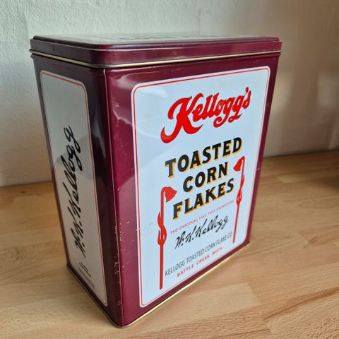 Kellogg’s cornflakes opbevaringsbox vintage, er velholdt, men alligevel lidt patina