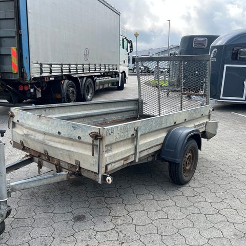 Brugt ladtrailer fra Brenderup med ekstra sider og presenning.