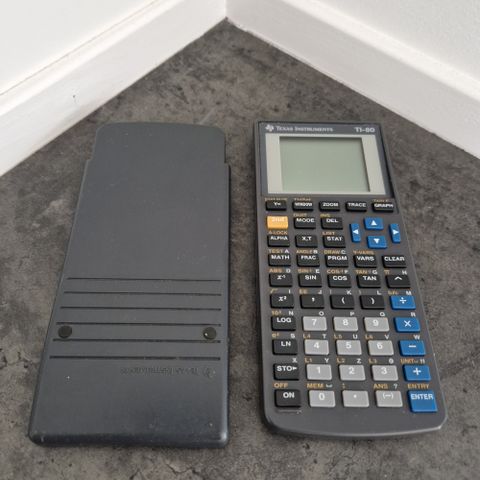 Vintage Texas Instruments TI-30X videnskabelig lommeregner med etui. Mål: cirka 8 x 15 cm.