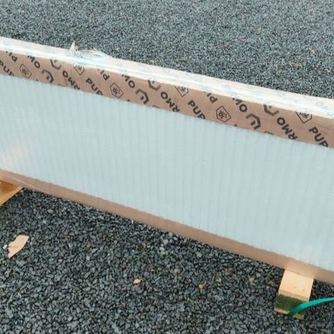 Radiator/konvektor Purmo, H :20 cm / L : 2 M, dobbelt med lameller. Ubrugt /209