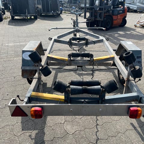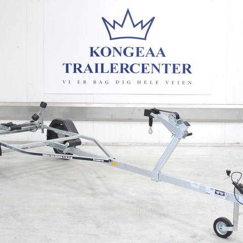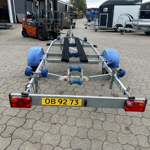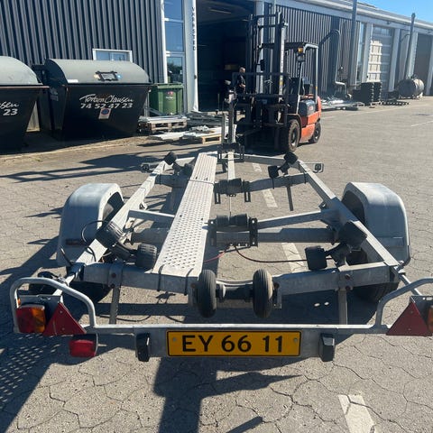 Brugt bådtrailer fra Brenderup med spil, 16 sideruller og 5 bundruller.
