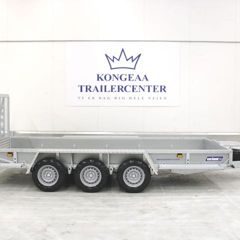 Brugt maskintrailer fra Variant med alu/finer bund, rampe og skovlplade