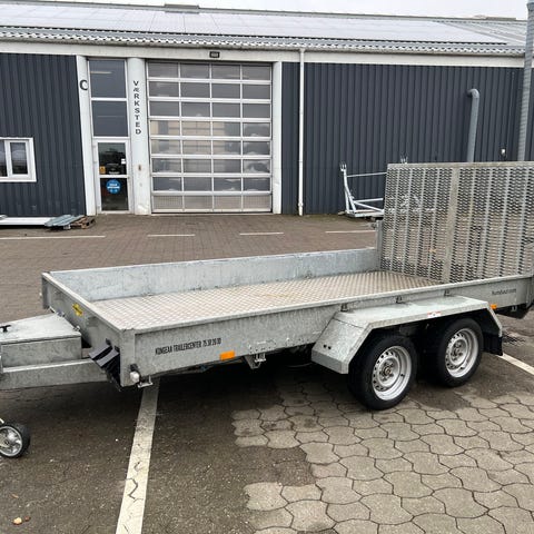 Brugt maskintrailer fra Humbaur med el sænke og hæve funktion, rampe og elspil årg 2023.