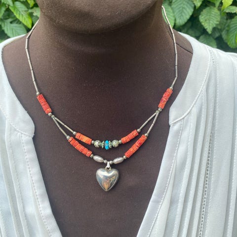 Den er cirka omkring 60 år gammel og er vurderet hos Bruun Rasmussen som ægte koral perler.