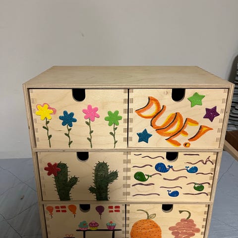 Kommode med farvede skuffer :