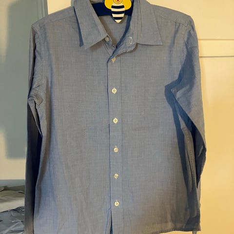 Benetton skjorte i blå farve, størrelse 152 til dreng. Fremstillet i bomuldsmateriale. Skjorten har knapper og en klassisk krave.