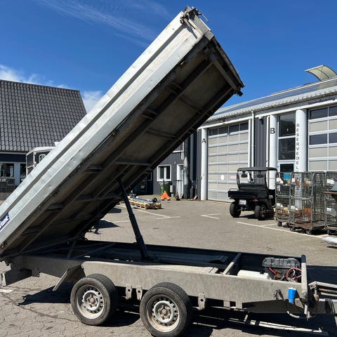 Brugt tiptrailer fra Böckmann med eltip, alusider og stålbund.