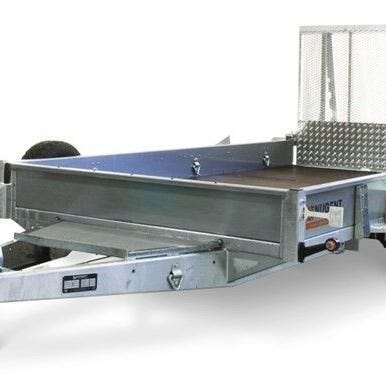 Brugt maskintrailer fra Nugent med alu/finer bund, rampe og skavlplade.