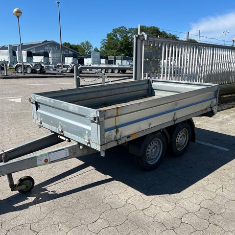 Brugt ladtrailer fra Variant med stålsider og næsehjul.