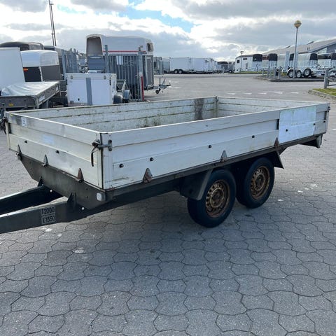 Brugt ladtrailer fra Variant med aluside og høj pressening.
