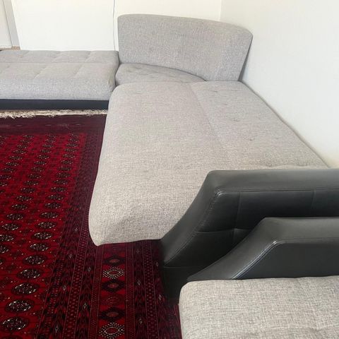 Sovesofaen står som vist på billederne, og puderne følger med.