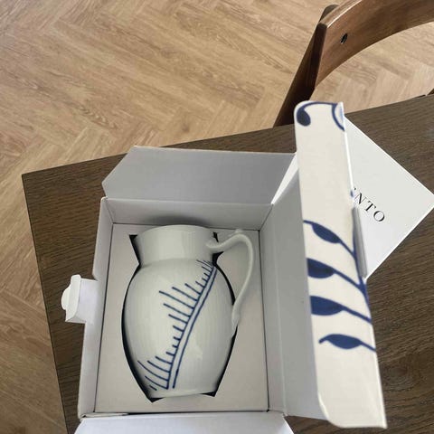 Fineste lille kande fra Royal Copenhagen 38 cm, blue fluted mega. Har fået den i gave men får den ikke brugt. Helt ny og ikke en gang taget ud af æsken. Nypris 629 kr.