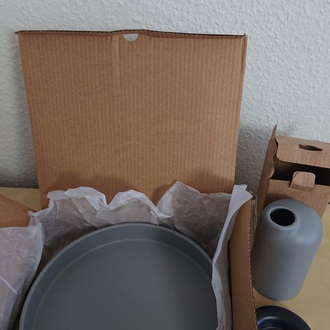 Lækre, bæredygtige produkter fra Lübeck Living: fad, vase, lysestage og pyntetræer