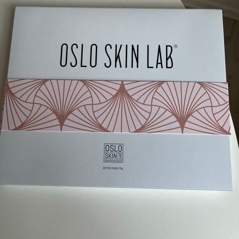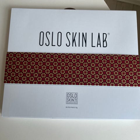 Oslo Skin Lab Hudplejesæt bestående af to pakker med forskelligt design på emballagen. Den ene pakke har gul baggrund med blomsterprint, og den anden har grøn baggrund med guldprikker. Produktet er beregnet til hudpleje.