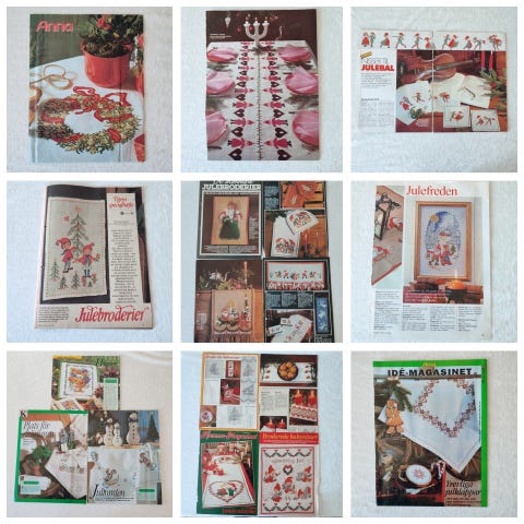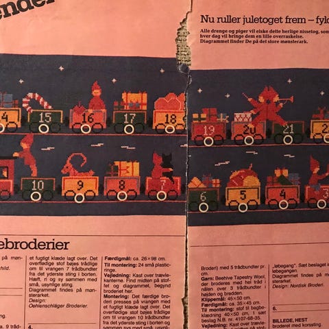 Julebroderi mønstre til kalender, julesok, bordløber og juletræstæppe