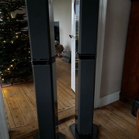 God lyd, mellemtone højttalerne er ny-renoverede. De står tilkoblet, så de kan høres.