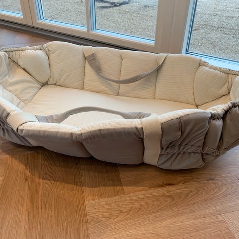 Blød og bærbar og designet specielt som et sikkert, behageligt og afslappet miljø for baby. Valgte denne over Najell babylift, da stoffet er meget mere åndbart og føles mere sikker. Passer i alle barnevogne eller kombivogn. Der medfølger et betræk til liften (aldrig brugt da min søn brugte den mest i sommer). Godt til de kolde måneder.