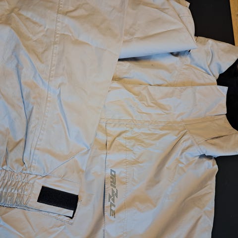 Cleveland golf regnbukser. Andet sport bukser i størrelse M, designet til unisex. Bukserne er sorte og lavet af et materiale, der egner sig til forskellige sportsaktiviteter. De har justerbare detaljer ved benene og elastik i taljen for bedre pasform.