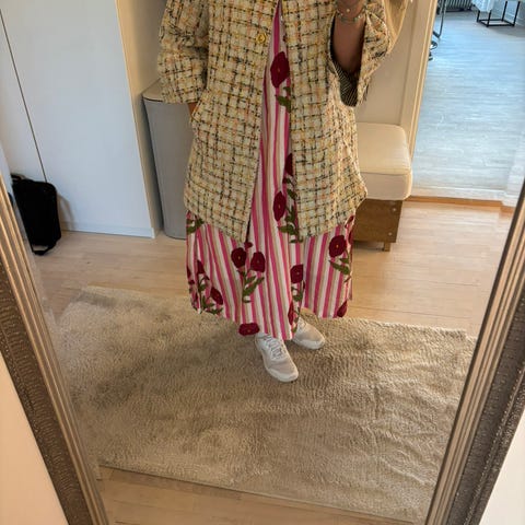 Købt i Amsterdam for knap 1500 danske kroner - det er en str. M (38) der er lidt facon i syningen og den sidder for stramt på mig og det er synd.