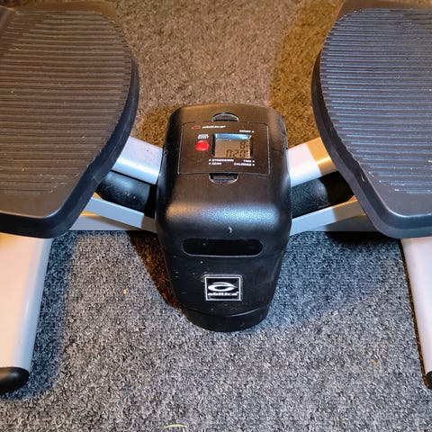 Abilica CoreStep 360 træningsudstyr med digital tæller til skridt, tid og kalorier. Sort farve og kompakt design til brug i hjemmet eller træningscenter.