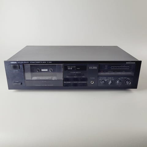 Stereo cassette deck fra Yamaha. Model TB-700. Der er lys i display når den tændes. Lyd er ikke afprøvet, men båndafspiller kører når man trykker på knapperne.