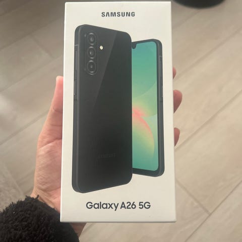 Samsung Galaxy A26 smartphone med 128 GB lagerplads. Enheden er sort og er i perfekt stand da den kun er brugt i en uges tid.