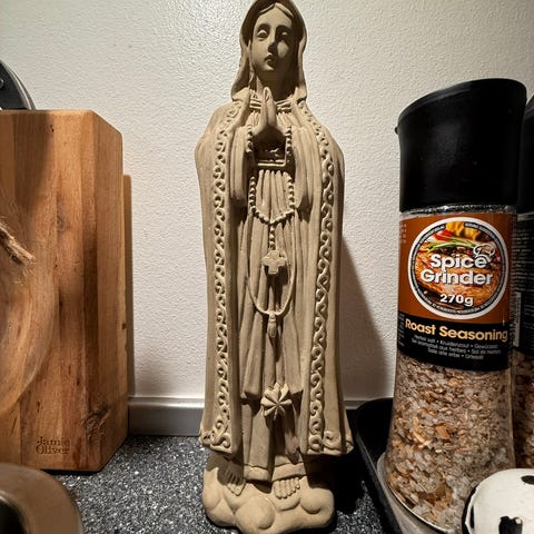 Flot og enkel Madonna figur i papmache / papir. 33 cm høj.