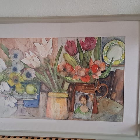 Akvarel malet af Plysser i 1992 - originalt signeret