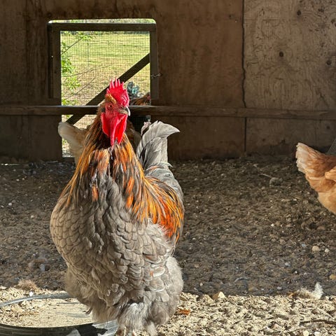 Hane fra bergs fairytale selv ruget ud fra deres smukke farvede æg - han er fra oliven chokolade æg. Søger ny hønsegård , han er omkring 10-11 uger gammel
